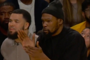 GIF-杜兰特和范弗里特化身啦啦队 在场边加油鼓劲